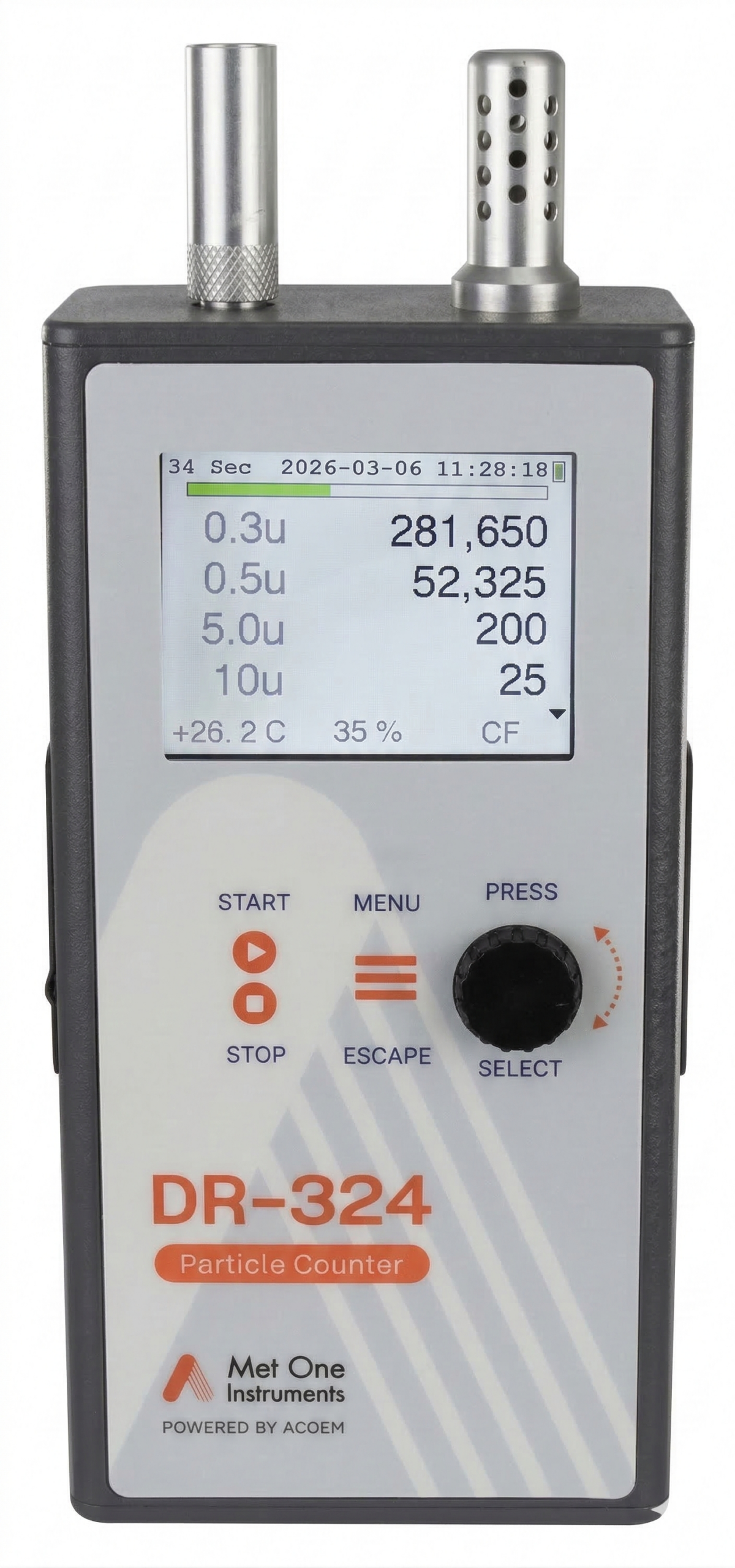 The GT-526S is a full-featured, battery-operated, portable particle counter that provides the functionality of a bench unit with the convenience of a handheld.